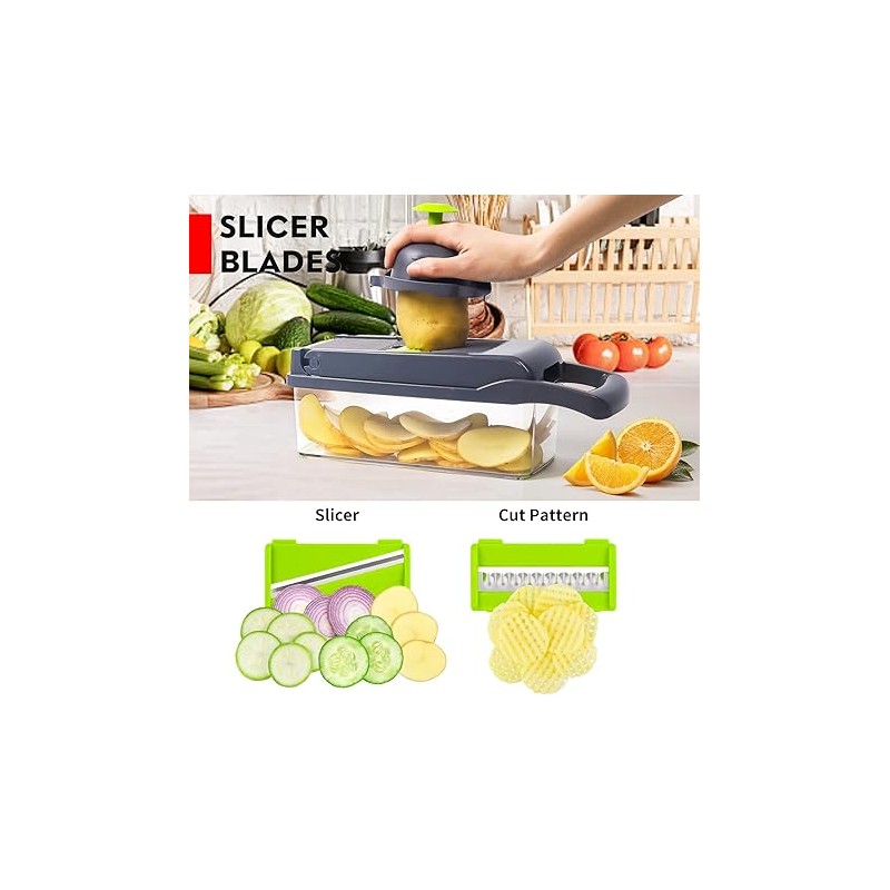 MAIPOR 13-in-1 Multifunctional Vegetable and Onion Chopper, Kitchen Slicer, Dicer, Cutter with 8 Blades, Ideal for Chopping Veggies, Carrots, Garlic, and More, Includes Convenient Storage Container (Gray).