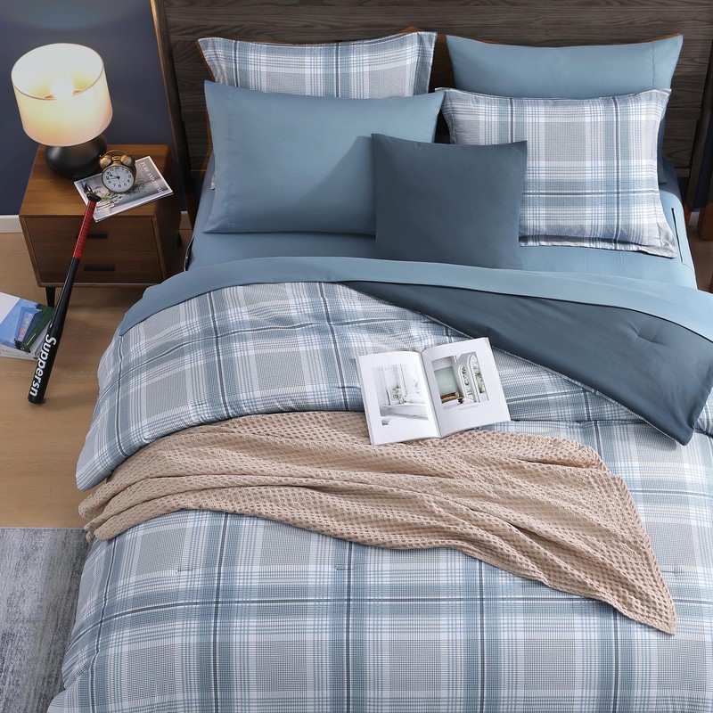 - 【Classic Plaid Bedding Set】Tailored from breathable and durable microfiber with lofty fill, our comforter set full is washed for an ultra-soft, lived-in bed set look for boys and girls. The preppy bedding design features a classic woven plaid with a textured print for a modern country-homestead feel. Super suitable for casual dorm bedding sets or coastal comforter sets