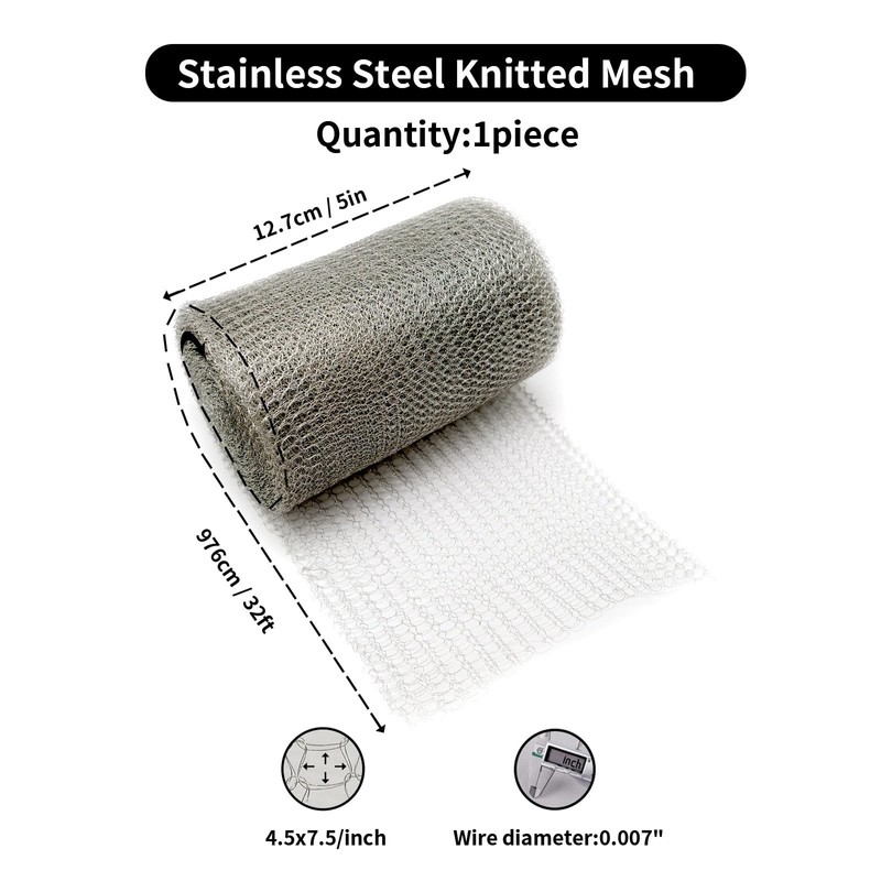 - Flexible & Porous MAISHI Stainless Steel Knitted Mesh 5"x32-ft Gas-Liquid Filter Net, Against Snails, Sluggo slug & Snakes, and Rats,