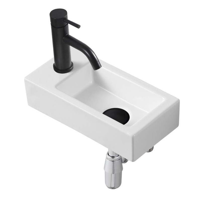 MAISINK Wall Mounted Sink, Small Bathroom Sink, Wall Hung Basin Sink, White Rectangle Ceramic Wash Basin Right Hand with Tap & Drain (Left Hand)