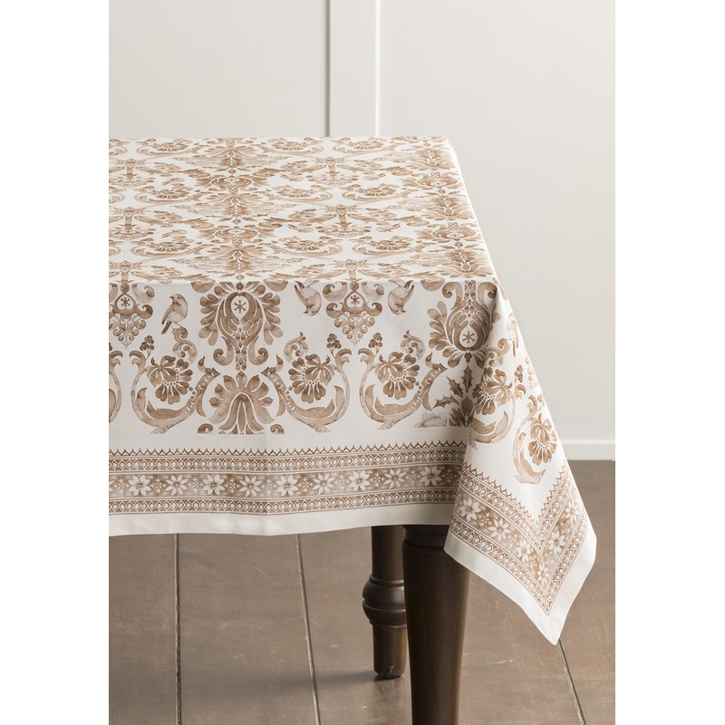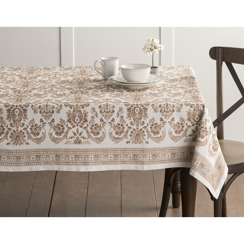 - PACKAGE INCLUDES: 1 Rectangle Tablecloth measures 60 Inch by 90 Inch. Its beautiful damask patters with birds gives this table cloth effortless style, making it a great choice for dressing up your table. The border of the tablecloth creates an elegance to any table setting. Our products are Designed in Europe and Made in India