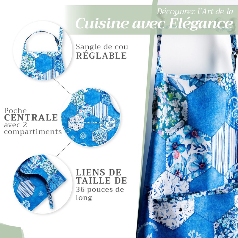 Maison d' Hermine Apron for women with Pocket 100% Cotton 70cm x 85cm 1 Piece Adjustable Neck Strap & long ties Apron Men, Chef, Cooking - Gifts for Mothers day Spring/Summer (Summer Blues)