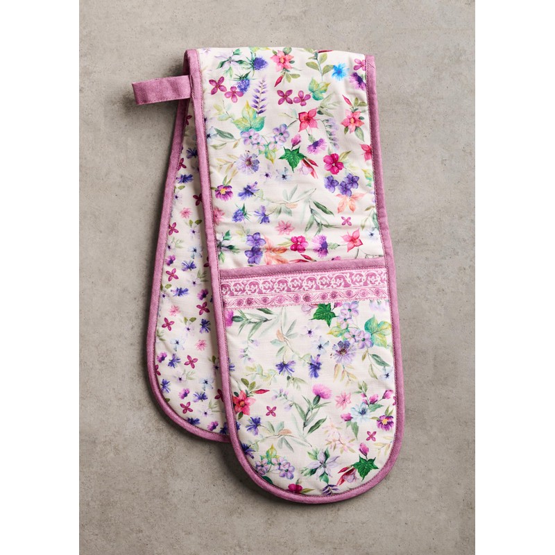 Maison d' Hermine Double Oven Mitts 100% Cotton 18cm x 89cm Double Oven Mitt BBQ Cooking Gloves with Loop for Baking, Grilling, Home, Handling Hot Pans, Chardon - Spring/Summer