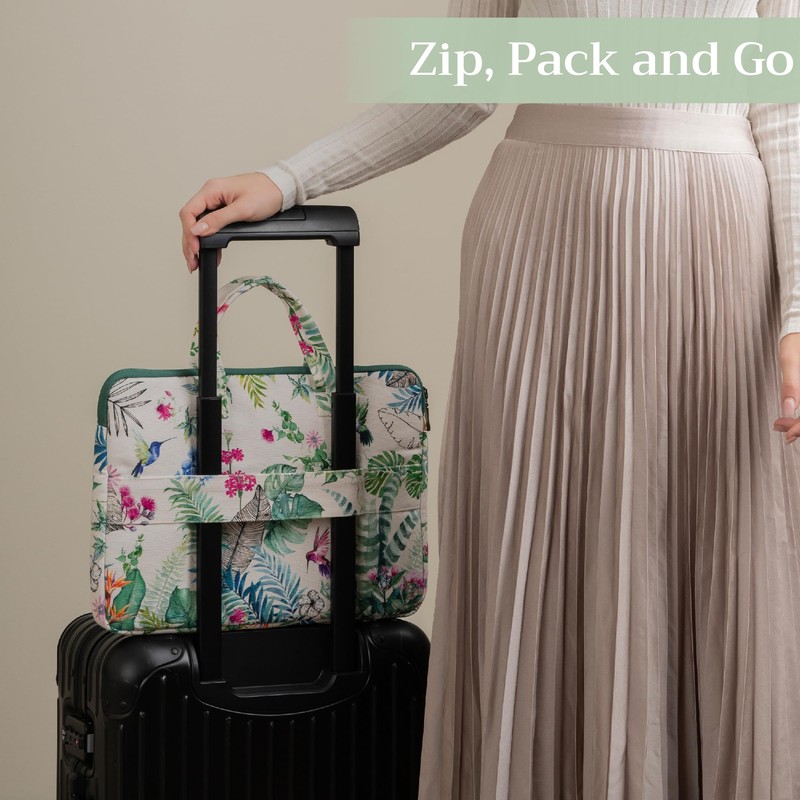 - Loaded with handy features like trolley sleeve, easy-to-access yet secure compartments for your phone, wallet, and well-appointed zip closure compartments that open up to slip pockets and pen loops to keep your Earpods, mouse, laptop charger and other essentials neatly stashed away.Artsy Designs and Vibrant patterns in vibrant colors provide huge visual interest, setting our bags apart. It is a versatile choice for just daily use, travel or commuting and a true delight to carry around.