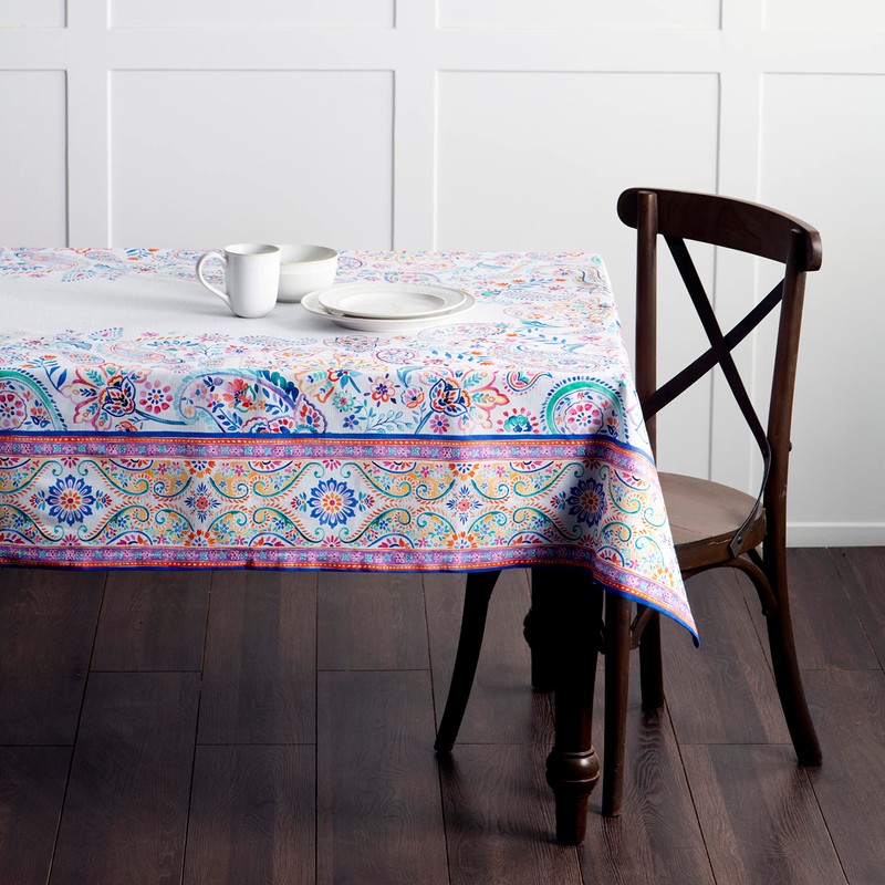Maison d' Hermine Tablecloth 100% Cotton Table Cover Decorative Washable Square Easter Tablecloths for Kitchen, Dining, Buffet Parties & Camping, Indian Floral - Spring/Summer (140cm x 180cm)