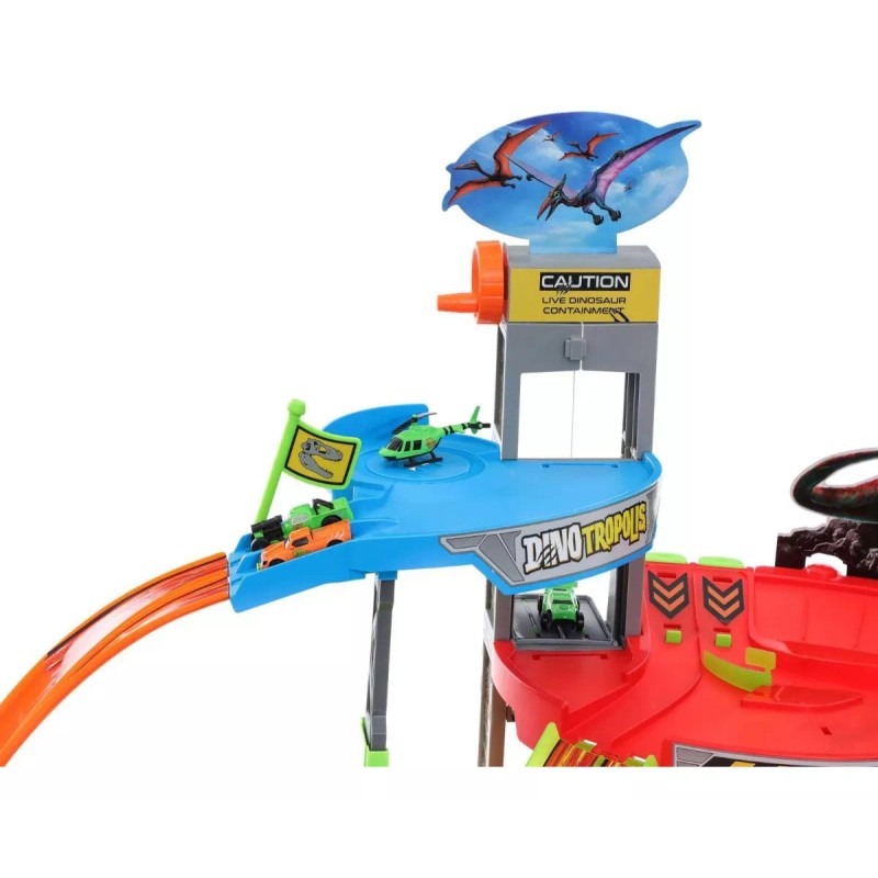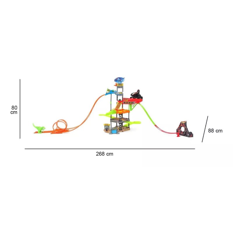 - Accesorios incluidos: Dinosaurios, Elevador, Pista, carros