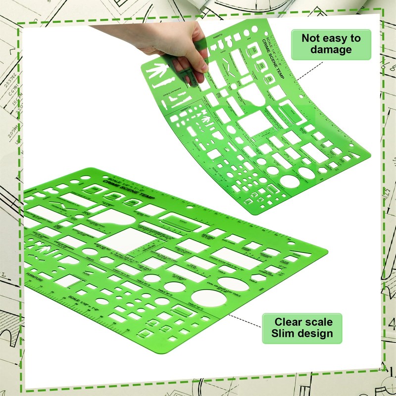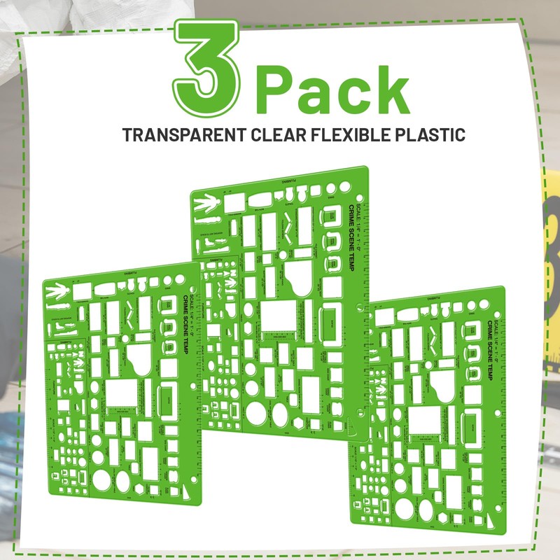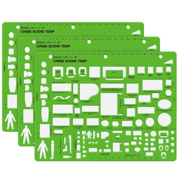 - Suitable size: This green plastic crime scene sketches measure 8.5" x 11". This notebook sized template has holes for easy storage in a three ring binder