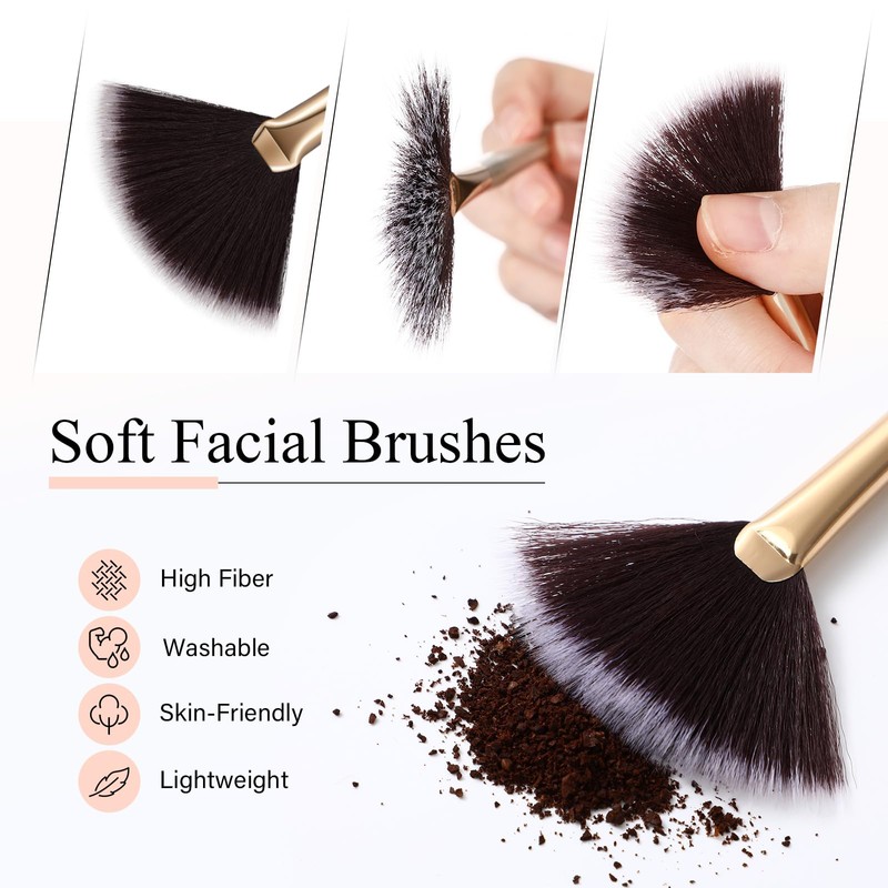 - Practical fan shape brush for makeup: wooden handle and soft fiber face fan shape brushes are portable and lightweight, easy to carry or put in your pocket or cosmetic bag, each brush match with a brush cover to prevent dirt, oil which may be on your hands from touching the brush