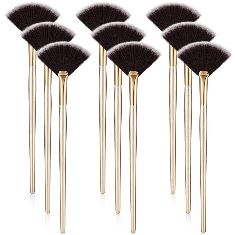 Features:Nice gift:These wooden handle and soft fiber face fan shape brushes are chic and lightweight, easy to carry, can give as a nice gift for your friends and family on their birthday party.Soft and comfortable:The bristles give you a nice and soft tactility on the skin, help to create a beautiful makeup, easy to clean, and bring you a good makeup experience.Specification:Brush length: 7.8 inch/ 19.8 cmBristle length: 1.6 inch/ 4 cmBristle width: 2.4 inch/ 6 cmWeight: 10 g/ 0.35 ozMaterial: soft fiber and wooden handleColor: as picture shownQuantity: 9 piecesPackage includes:9 x Makeup brushesNote:Manual measurement, please allow slight errors on size.