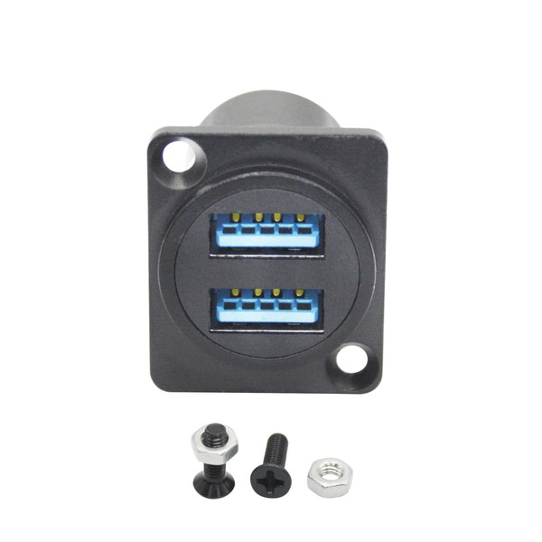 - 【Dual USB Socket】Dual USB panel mount connector, with 2 independent USB 3.0 socket, simultaneous operation, for USB data transmission and power supply.
