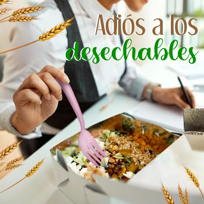 - Hecho de fibra de trigo de grado alimenticio, reutilizable de degradado fácil.