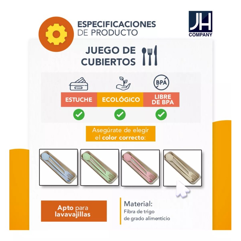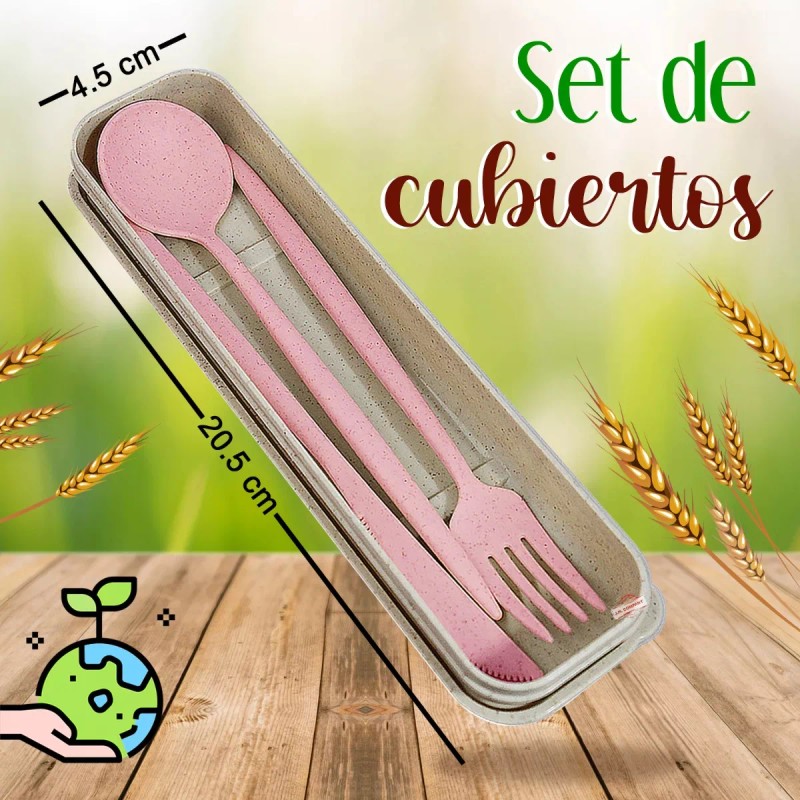Set Cubiertos Portátiles Estuche Ecológico Fibra Trigo MODELO: MX-002