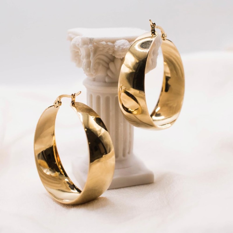 - ✨ VARIETY OF SIZES: Available in three different sizes with a diameter of 2 cm, 3 cm or 4 cm, to suit all styles and preferences and offer versatility and comfort. Silver hoop earrings for women are a top trend and large hoop earrings are ideal for bolder looks. Wide hoop earrings gold and gold-plated wide hoop earrings fit any style.
