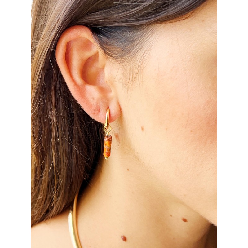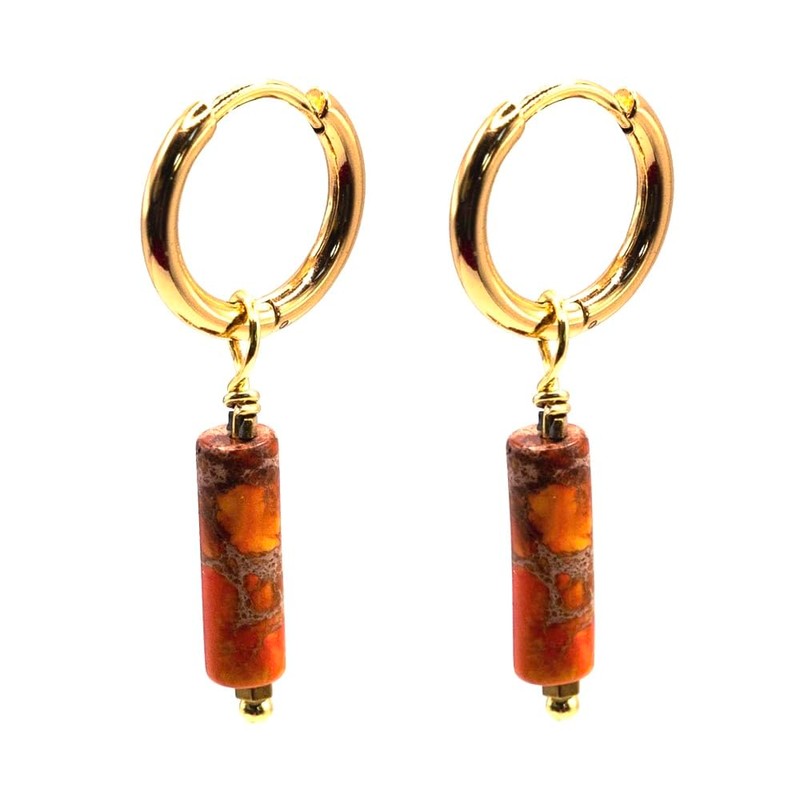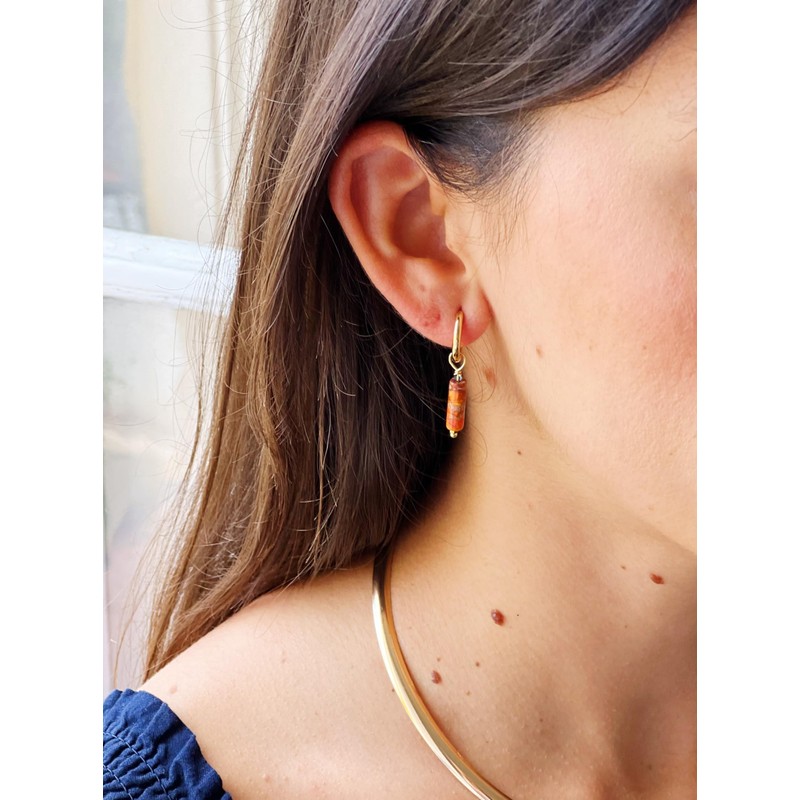 - NATURAL STONE DESIGN - Small gold hoop earrings with natural stone pendant in tubit shape, available in reddish agate, amethyst or turquoise. These stones add a touch of color and elegance to your style, each with its unique beauty: warm reddish agate, refined purple amethyst and fresh blue turquoise. Perfect to enhance any outfit with a refined and natural style, ideal for any occasion.