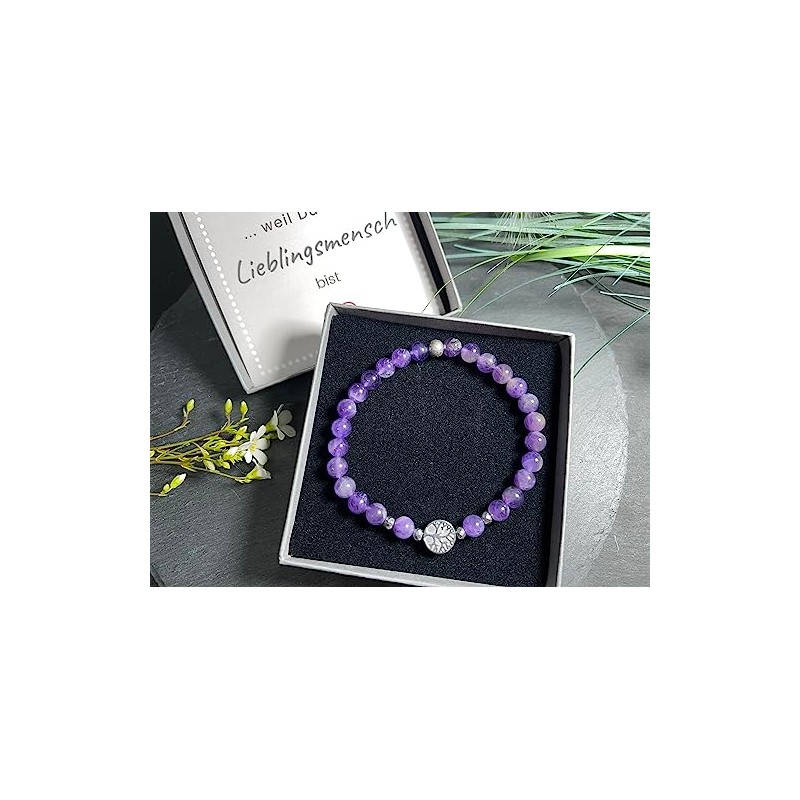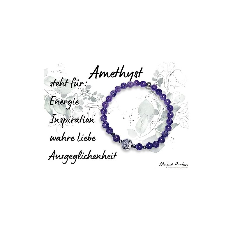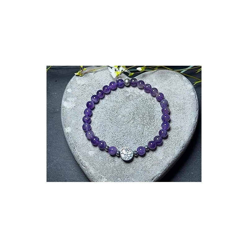 Majas Perlen Amethyst Armband Perlen echt 6mm Lebensbaum H√§matit Silber - Handmade Perlenarmband Wahre Liebe Inspiration Energie - Spiritueller Esoterischer Schmuck Unisex - Personalisierbar