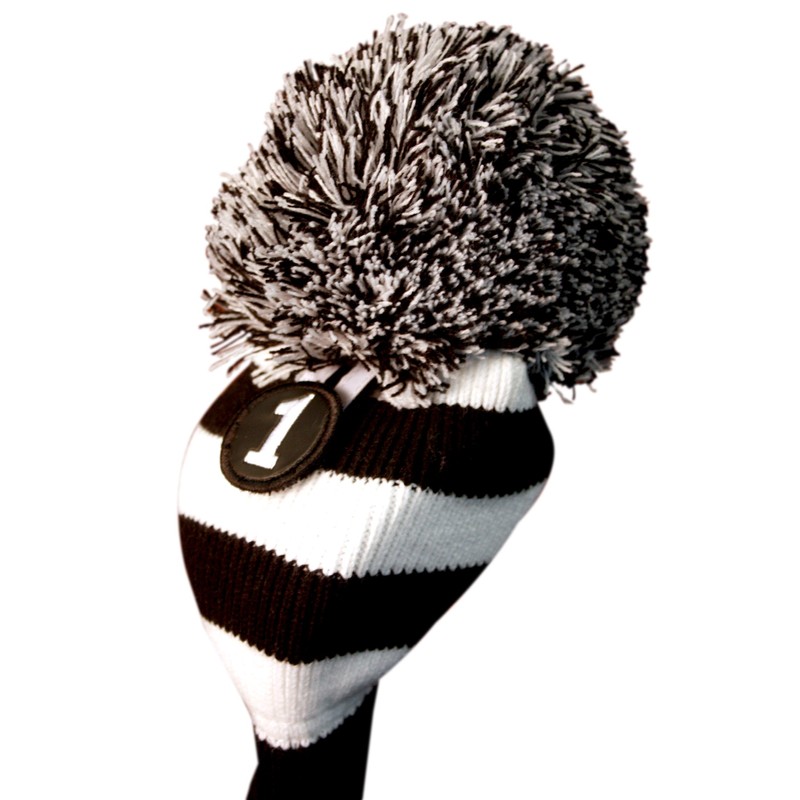 Majek #1 up to 460cc Driver Black & White Golf Headcover Knit Pom Pom Retro Classic Vintage Head Cover
