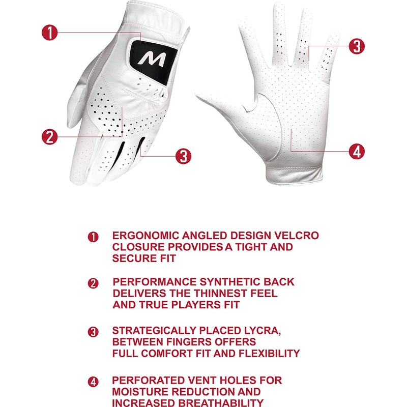 Majek Golf Mens Pro Tour White Cabretta Leather Golf Gloves Comfort Fit Breathable Ventilation for Maximum Feel - 6 Pack (Medium, right)