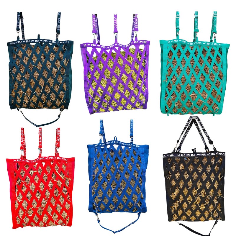 - Slow Feed Openings: Diamond-cut webbing encourages slower eating, helping to improve digestion and reduce hay waste. This hay feeder bag features a trademarked bottom that allow horses to eat comfortably while preventing gulping too much food or air at once.