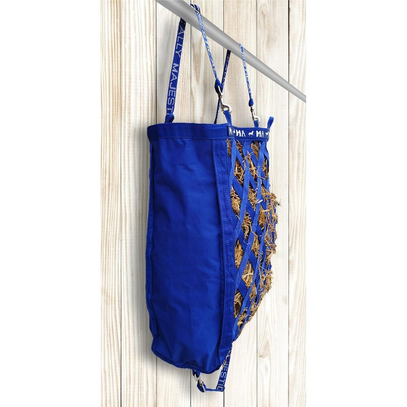 Majestic Ally Double Side Open Slow Feeder Hay Bag - Diamond Shaped Obliquely Placed Webbing (Royal Blue)