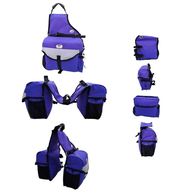 Majestic Ally Horse Saddle Bag - Nylon Insulated Leakproof Cooler, Reflective Padded with Pockets and Water Bottle Carrier, Durable Equestrian Saddle Bag (Purple)