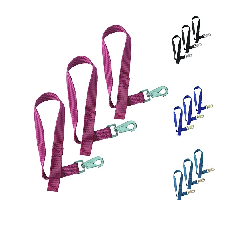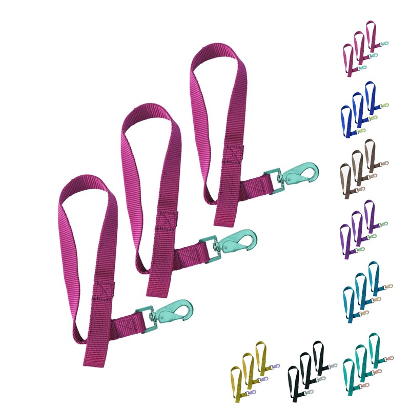 - PACK OF 3 & AVAILABLE IN MULTIPLE COLORS - Our bucket strap comes in pack of 3 so you can hang everything you need in your stall, pasture or horse trailer. Also, they are available in 4 colors Black, Royal Blue, Turquoise Blue and Hot Pink..