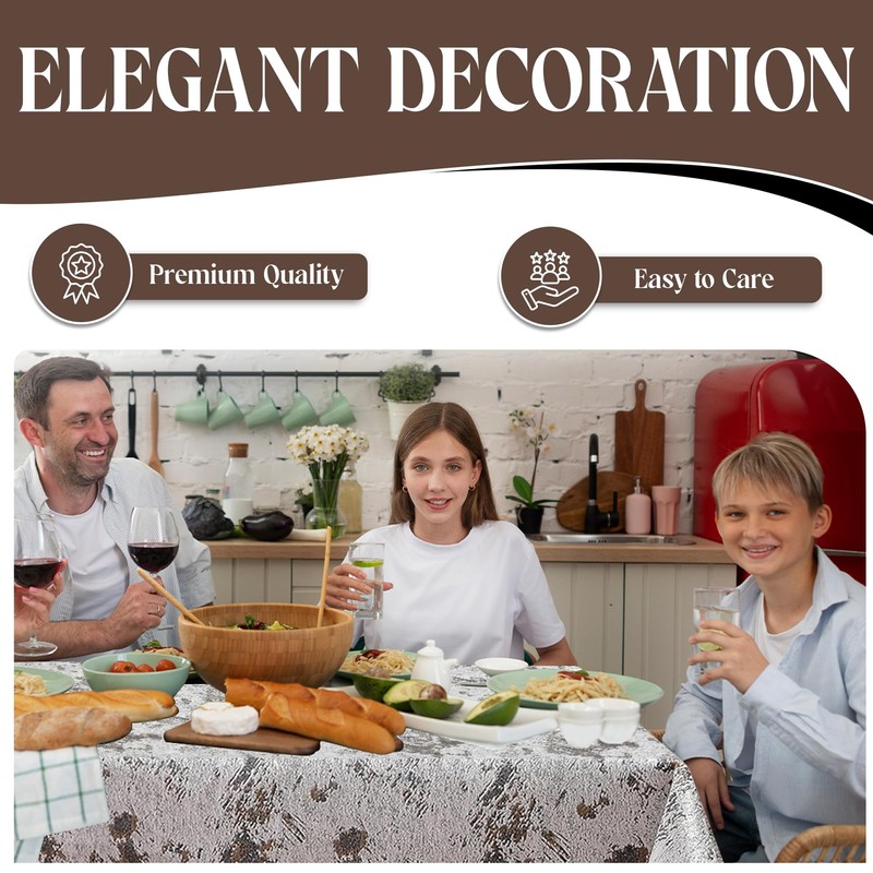 - PACKAGE INCLUDES: This large tablecloth is versatile, measuring 70 inches by 108 inches. It features an attractive jacquard desert grey print. This color scheme adds an elegant touch to your table decor, making it suitable for various occasions and settings.