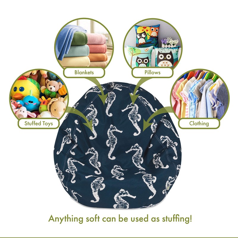 Majestic Home Goods Sea Horse Storage Bean Bag, Navy Blue