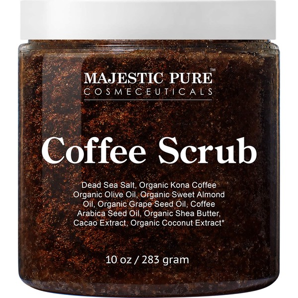 Majestic Pure Arabica Coffee Scrub - All Natural Body Scrub for Skin Care, Stretch Marks, Acne & Cellulite, Reduce the Look of Spider Veins, Eczema, Age Spots & Varicose Veins - 10 Ounces by MAJESTIC PURE