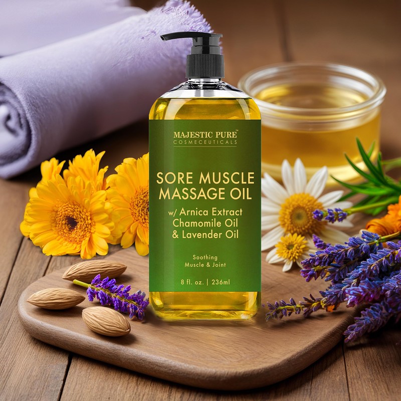 - Majestic Pure Sore Muscle Massage Oil is designed specially so you can look and feel your best.