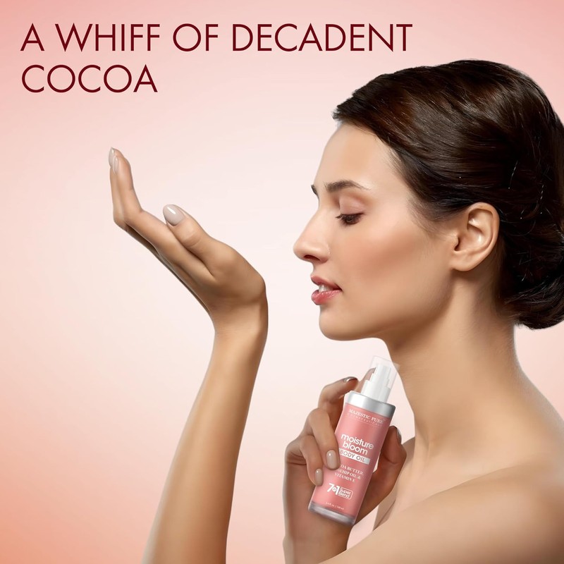 - Intense Hydration: The rich blend of Cocoa Butter and Vitamin E in Moisture Bloom Body Oil and women deeply hydrates skin to lock in moisture, creating soft, supple skin with a smooth and velvety feel.