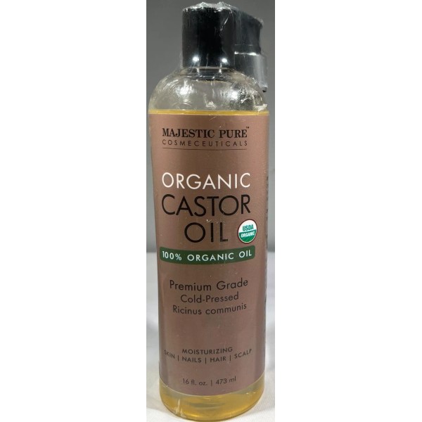 Majestic Pure Organic Castor Oil Cold-Pressed Ricinus Communis, 16 oz.