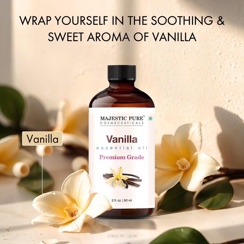 MAJESTIC PURE Vanilla Essential Oil | 100% Pure and Natural Oil | Premium Grade Essential Oils for Hair Care, Home Diffusers, Skin, Aromatherapy, Massage and Humidifiers | 2 Fl Oz