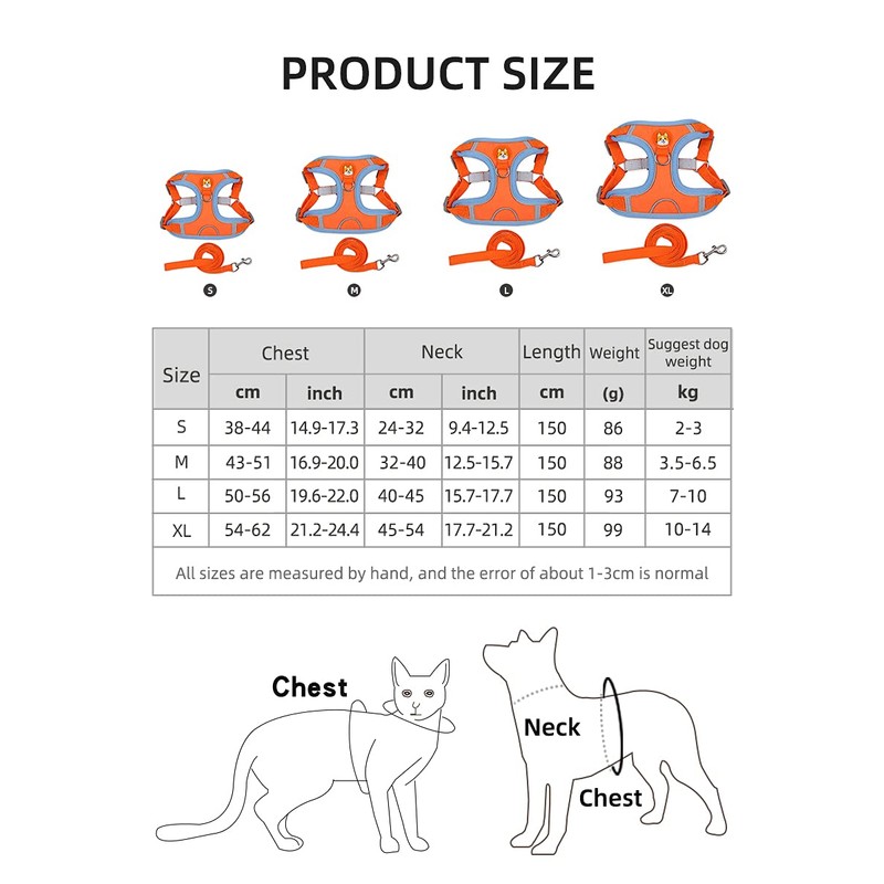 - The dog harness is made of durable polyester, which is breathable, lightweight, comfortable and quick-drying