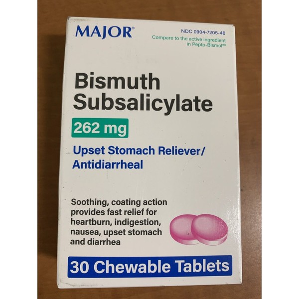 Major Bismatrol 262mg - 30 Chewable Tablets (compare to Pepto-Bismol)