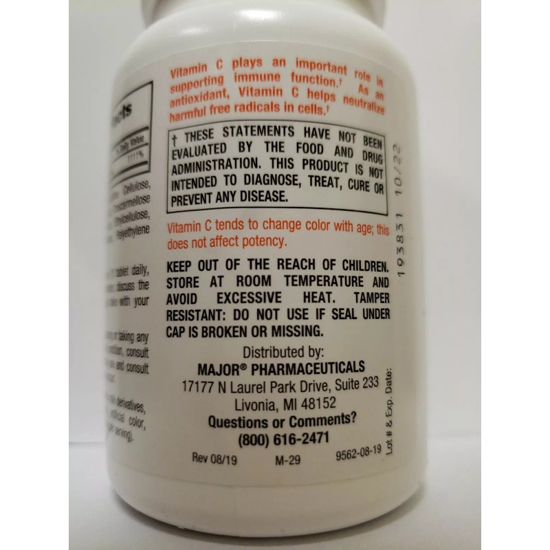 Major Vitamin C-1000 MG Ascorbic Acid 100 tablets