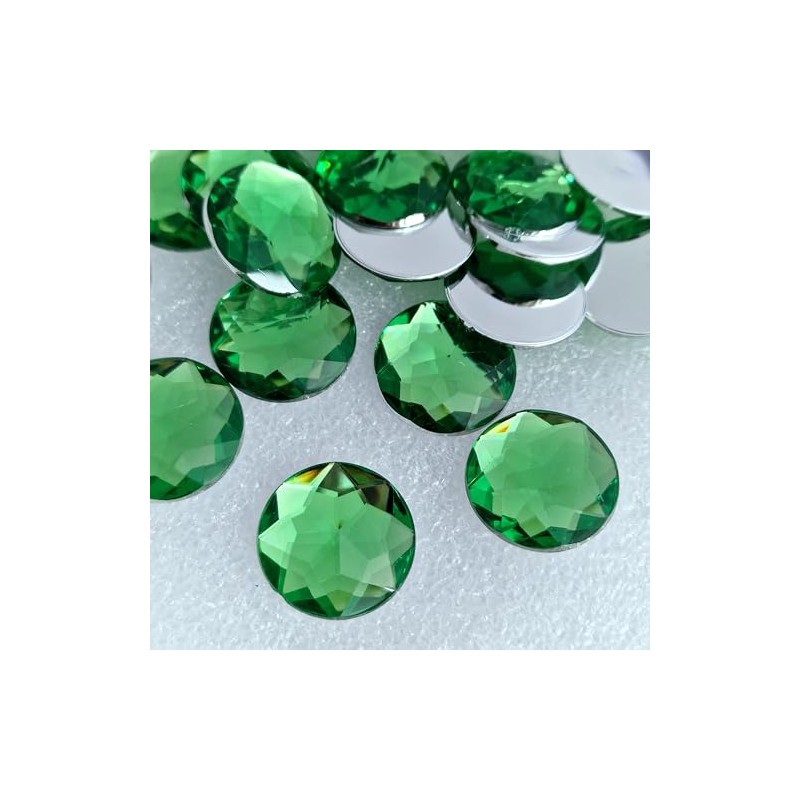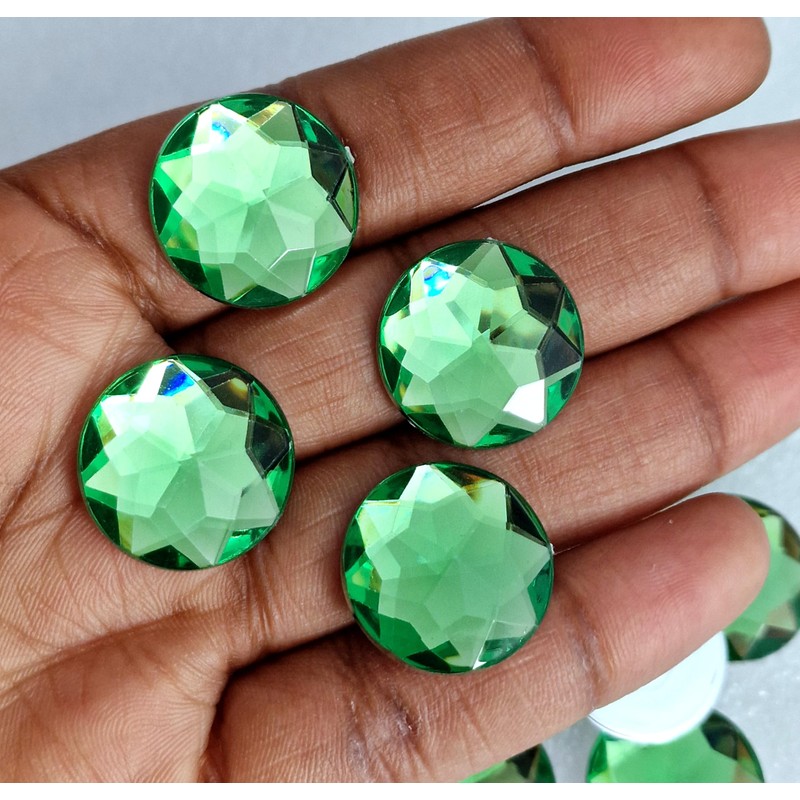 MajorCrafts® 48pcs 20mm Star Facets Large Flat Back Round Acrylic Rhinestones Craft Gems (Emerald Green)