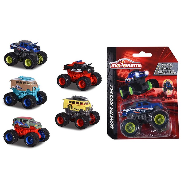 - Great exaggerated, a VW bus as a monster truck - why not The Majorette Monster Rockerz collection shows popular models of VW, Ford and Toyota as bold monster versions with correspondingly large rubber tyres and a high-quality suspension and steering.