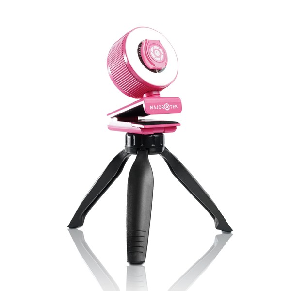 MAJORTEK PC Webcam with Microphone 2K with Adjustable LED Ring Light, PC Camera with Privacy Cover and Tripod, Webcam for Laptop, Skype Studio Zoom Facetime Twitch