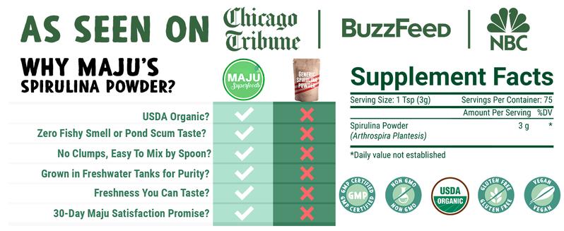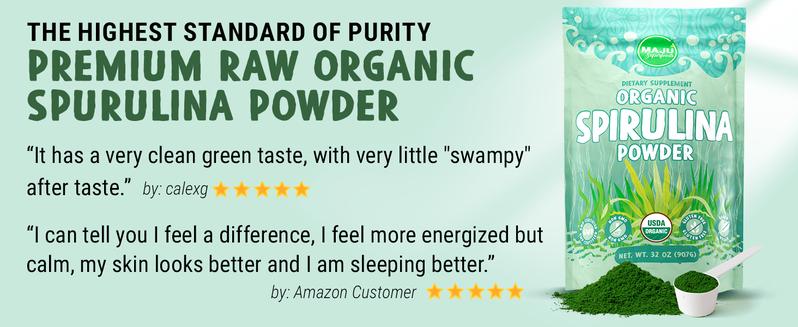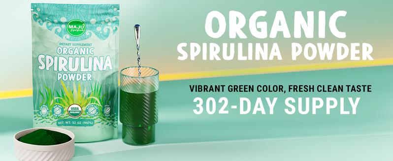 MAJU 2lb USDA Organic Spirulina Powder - Natural, Edible, Dietary Supplement for Immunity, Endurance, Digestion - Non-Irradiated, Gluten-Free