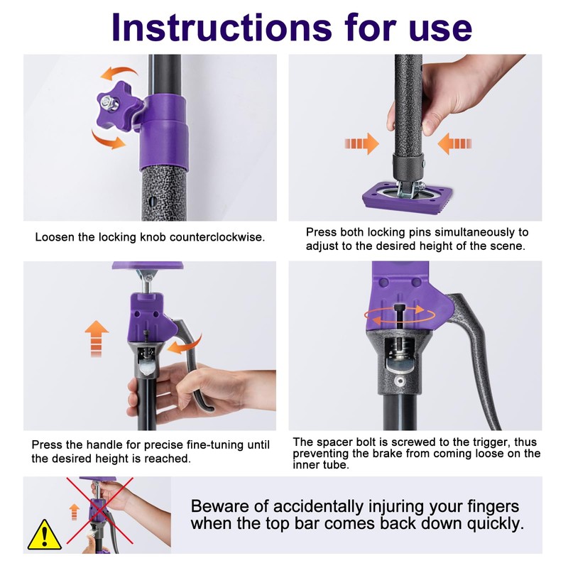 - SWIVELING NON-SLIP BASE: Our support bar base features professional-grade TPR non-slip feet for stability and durability in a variety of working conditions. Its 360° swivel and 45° tilt features are ideal for a variety of decorative installations. In addition, the screws on the top and bottom bases can be tightened to prevent rotation during use.