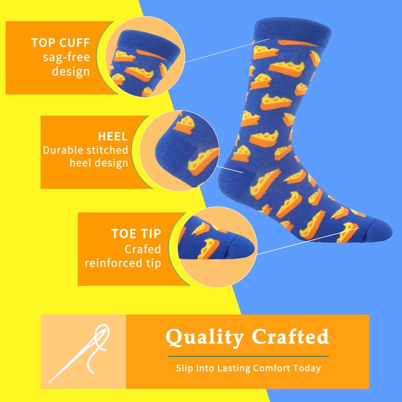 - Colorful Fruit and Food Patterns: Funny fruit and food with steak, banana, cheese, lemon, avocado. Stylish designs socks make it easier to match your clothes