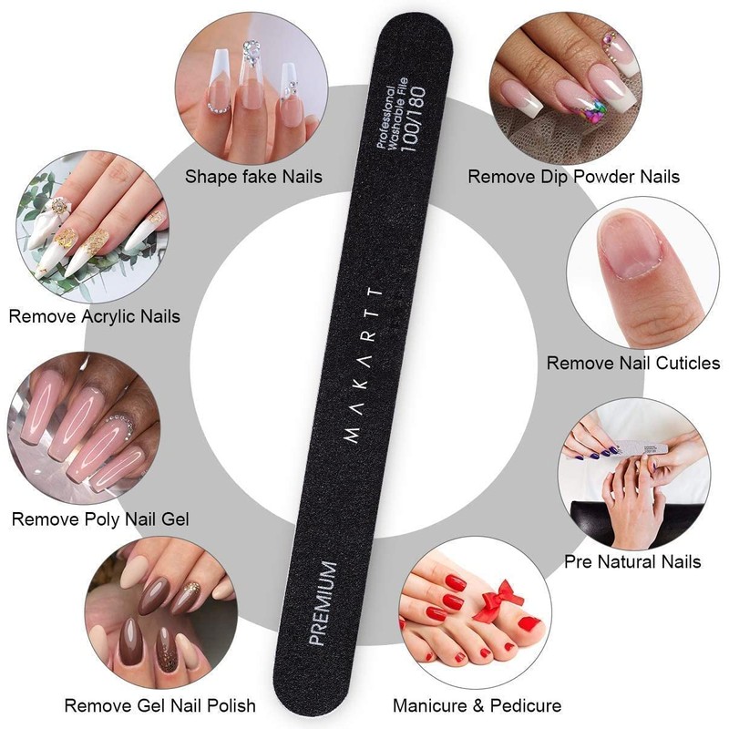 - Professional Nail File - Makartt nail files bulk can be for shaping, grinding, smoothing & polishing. Not only help you trim and shape your desired nail shape and length, but also ideal for grinding and polishing your nails to get more shine and smoothness, even remove nail gels.