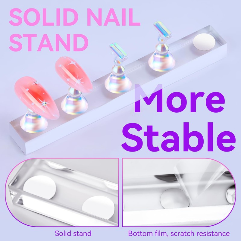 - Magnetic Holder for Easy Display & Curing- This nail stands for nail art comes with magnetic holder, which helps you to easily display your nail designs,curing them in the nail lamp. this is a great add-ons for your press on nail kit. A Nail Artist Must Haves