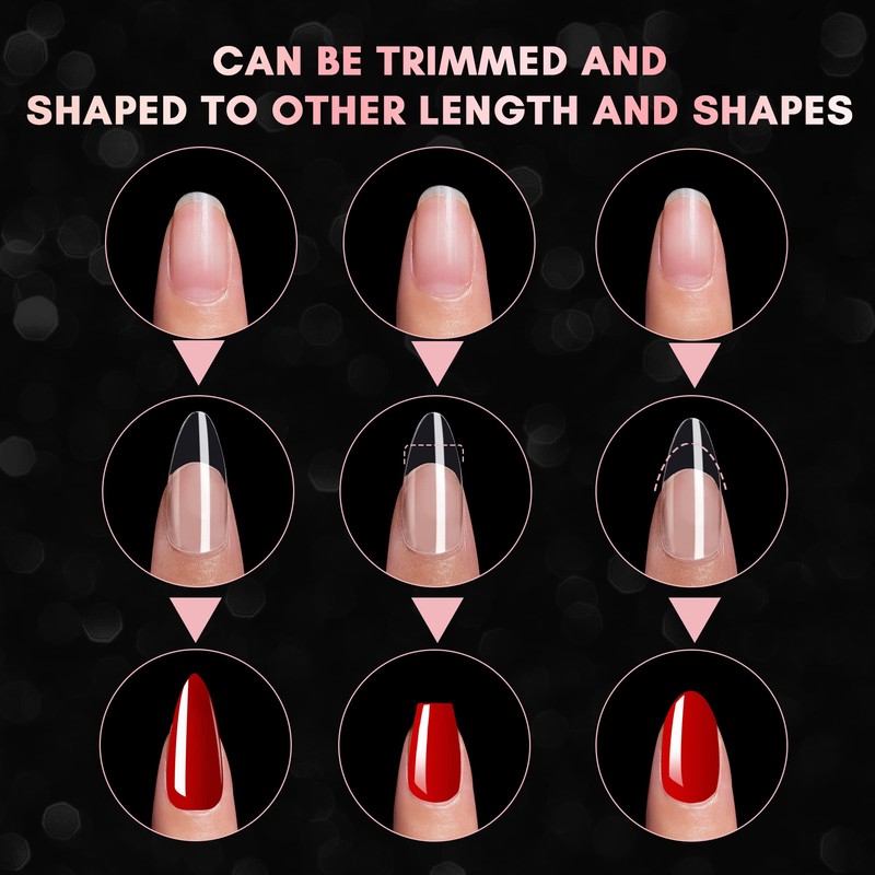 - Easy Operation: Stiletto nails full cover are easy to apply, paint and trim.Just apply with nail glue and press it on nail, then decorate the clear stiletto nails with color gel and nail decoration you liked, making your tips magical and stylish