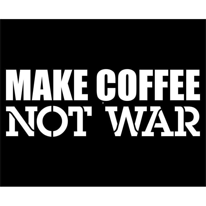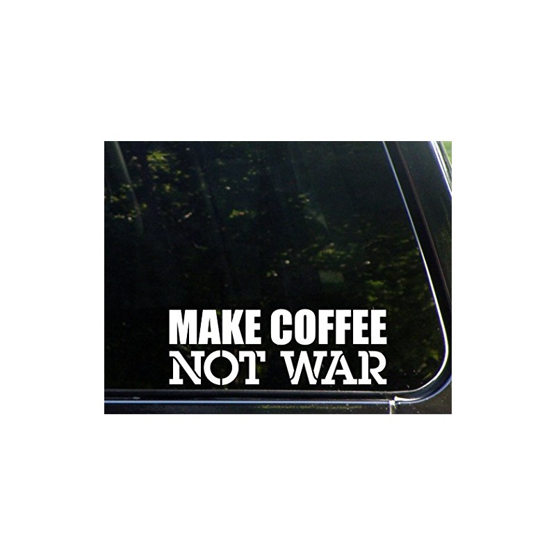 Make Coffee Not War - 8 3/4"x 3 1/4" - Vinyl Die Cut Decal/Bumper Sticker for Windows, Trucks, Cars, Laptops, Macbooks, Etc.