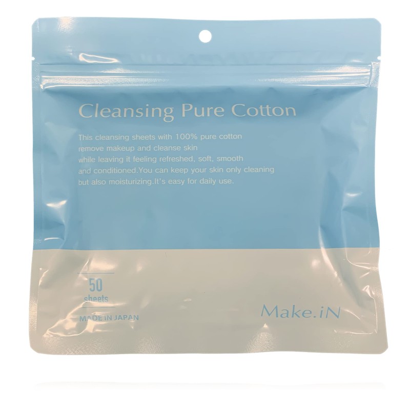 Make.iN Cleansing, Pure Cotton, 50 Pieces, Large Capacity, CICA Human Stem, Collagen, Moisturizing, Moisturizing (1)