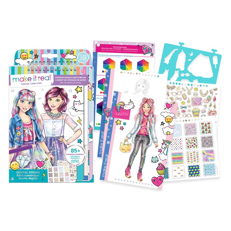 Make It Real - Fashion Design Sketchbook: Digital Dream. Inspirational Fashion Design Coloring Book for Girls. Includes Sketchbook, Stencils, Puffy Stickers, Foil Stickers, and Fashion Design Guide