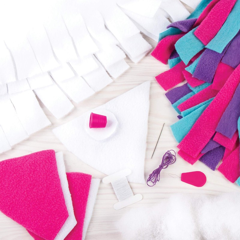 What’s more magical than a unicorn hooded blanket? A unicorn hooded blanket you’ve created yourself! Learn how to knot and sew this cozy fleece accessory with this kit’s precut materials. And...cozy fleece fabric means snuggles for days!