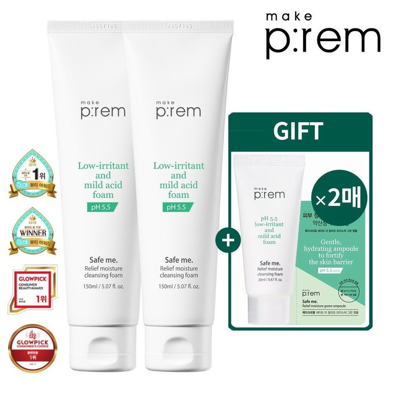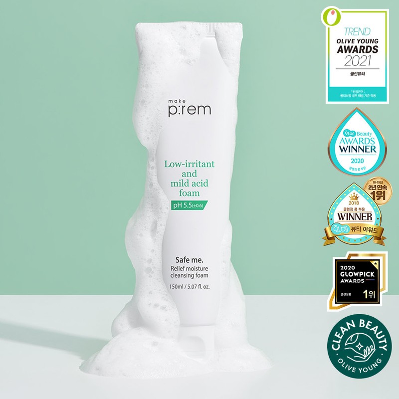 Make Prem Safe Me Relief Moisture Cleansing Foam (150ml) 1+1 [GIFT] Cleansing Foam 20ml + Sachet 2 Sheets