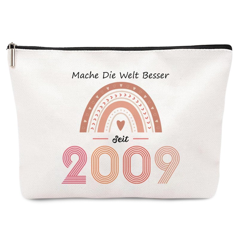 - Timeless gift for 16th birthday girls: personalised make-up bag for 16th birthday girls made of linen with cotton lining. Printed with: "Make the World Better", "Since 2009" and Rainbow.